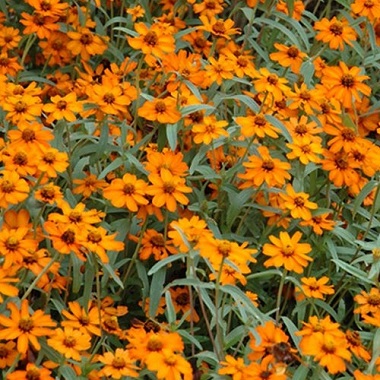 Цинния узколистная Стар (Zinnia angustifolia Star).  Цинния образует раскидистый куст высотой до 35 см со множеством одиночных цветков звездчатой формы, до 5 см в диаметре.