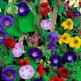Вьющиеся растения, высота до 250 см. Используют для живых изгородей, шпалер. Смесь включает в себя набор наиболее красивых и популярных вьющихся растений - настурцию, смесь душистого горошка, вьюнок, тунбергия и др. Легко выращиваемые растения, цветут всё лето.