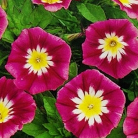 Вьюнок трехцветный низкорослый. Компактный кустик высотой до 25 см. Цветки, широко открытые граммофончики с яркой желтой серединкой, собраны на концах побегов. Открыты только в ясную погоду. Цветет обильно в течение июня-августа. Используют в рабатках, миксбордерах, для озеленения веранд, балконов, альпийских горок.